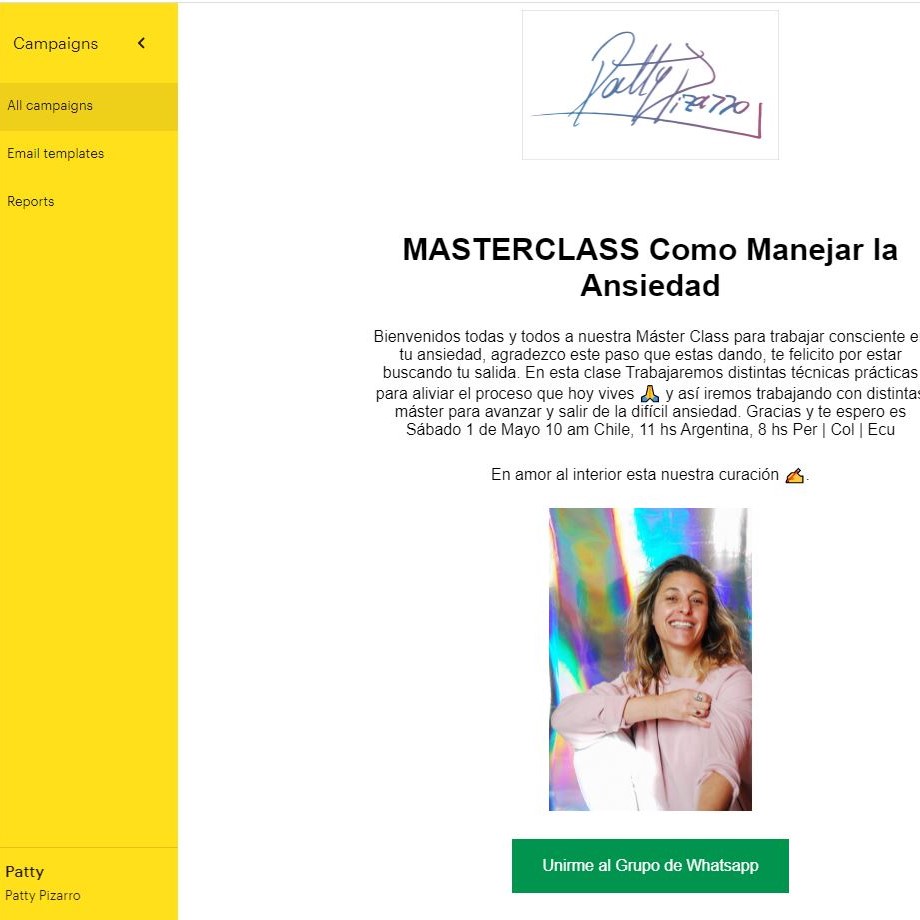 Se crearon mails de bienvenida, mails informativos, mails de recordatorio de la Masterclass y de Agradecimiento.